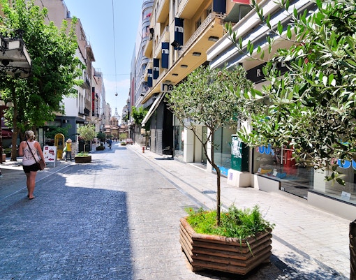 Il principale viale dello shopping di Atene, con marchi internazionali e grandi magazzini greci.