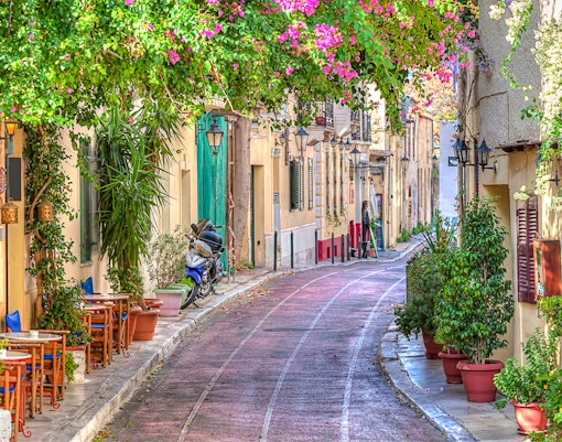 Passeggia in questa vivace strada ricca di negozi, caffè e viste sull'Acropoli.