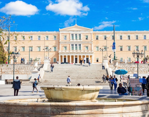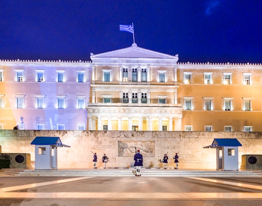 La piazza centrale di Atene, sede del Parlamento greco e della cerimonia del cambio della guardia.