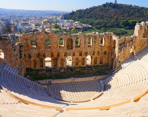 Entra nel luogo di nascita del dramma greco in questo antico teatro all'aperto, dove furono rappresentate per la prima volta le opere di Sofocle ed Euripide.