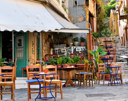 Piccole piazze verdeggianti nascoste tra le case di Plaka offrono ombra e una pausa tranquilla dalle visite turistiche.