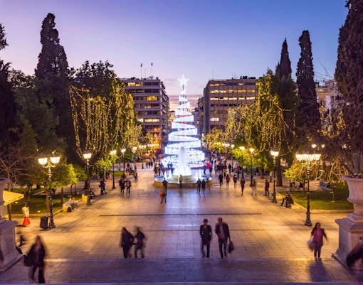 Luci festose, mercatini e concerti riempiono Piazza Syntagma e Plaka, creando una magica atmosfera natalizia.